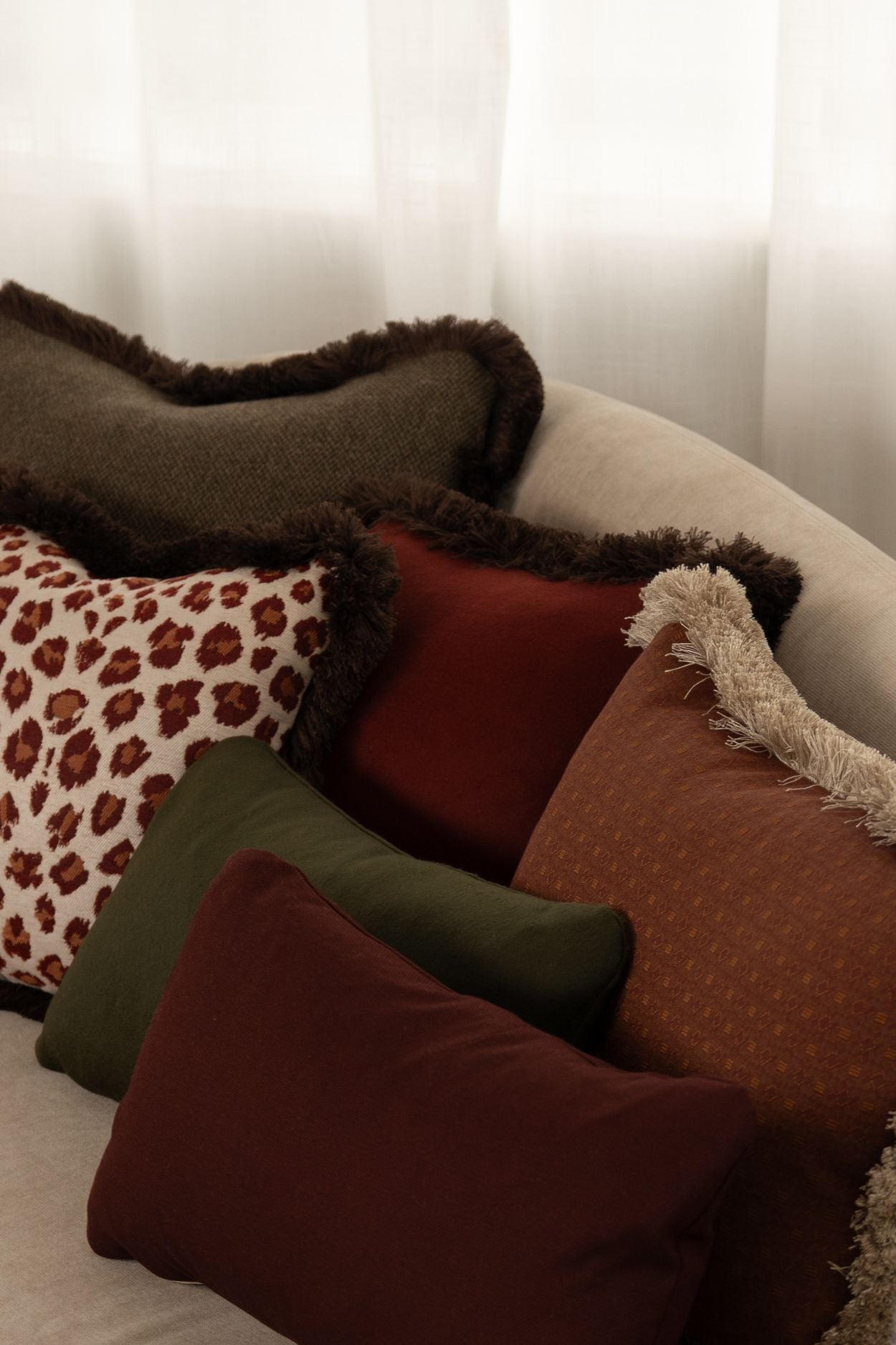 Onze klanten kunnen vertrouwen op een unieke selectie van sierkussens gemaakt van kostbare stoffen, voornamelijk van Italiaanse oorsprong. De namen van de prestigieuze merken waarvan we de stoffen afnemen, zullen nooit openbaar gemaakt worden om reputatieschade te voorkomen.