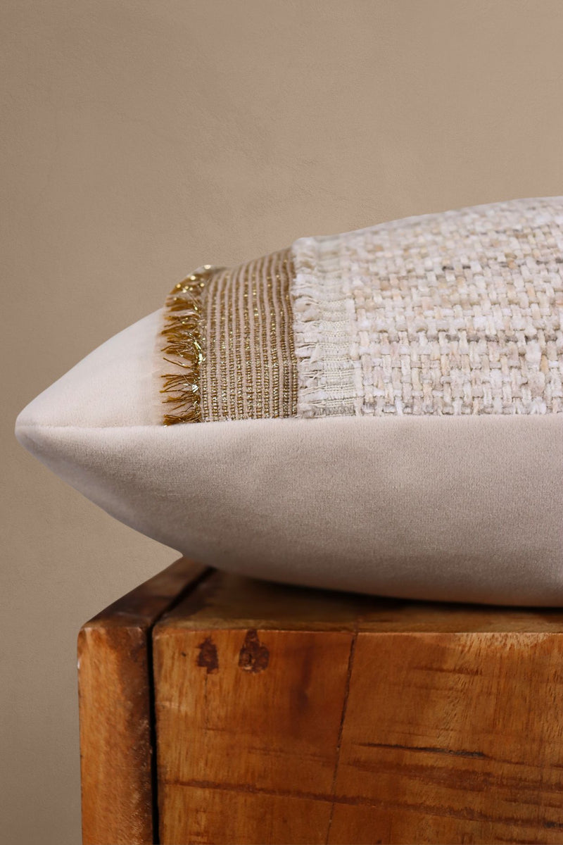 Tegenover de strakke lijnen van je bank of bed en de gladde stof van andere kussens creëer je visueel contrast en doorbreek je de strakke lijnen met drie verschillende textuurstoffen.